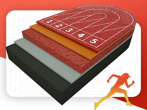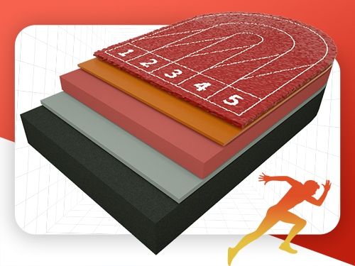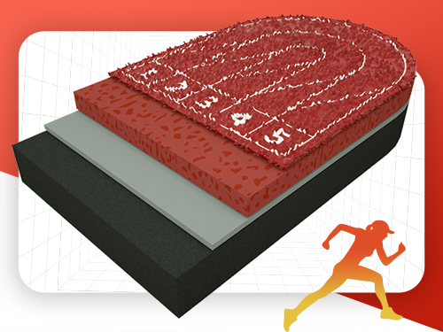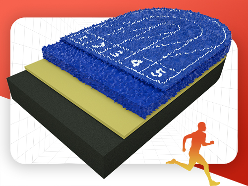 彈性層為純聚氨酯材料,面層為EPDM顆粒混合聚氨酯跑道面料噴涂而成的防滑面層,具有強(qiáng)度高、彈性好、吸震性能好、耐磨、耐氣候老化、防滑、平整和色彩美觀的優(yōu)點(diǎn)。